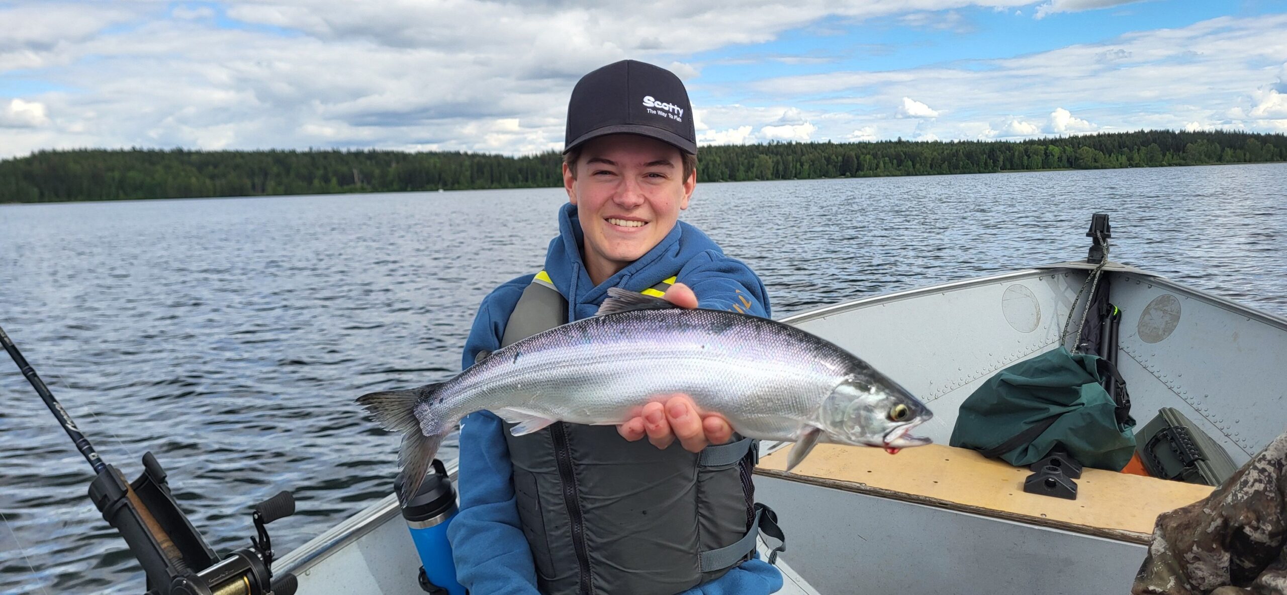 My special blend garlic corn (which I sell locally in Prince George and Quesnel) seemed to seal the deal and helped us get into over twenty fish in the first hour of fishing. Then, once the clouds broke and the lake started to calm down, the fish seemed to stop biting as well as they first were. We tried different speeds, depths, and areas of the lake but the slow down in excitement left us with grumbling bellies which triggered us to be hungry and ready to go home for dinner (we forgot to pack snacks).